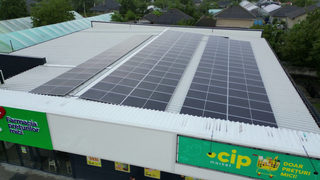 Новая фотогальваническая установка мощностью 52 кВт DC / 40 кВт AC была смонтирована на крыше супермаркета CipMarket в селе Сынжерий Ной, район Сынжерей.