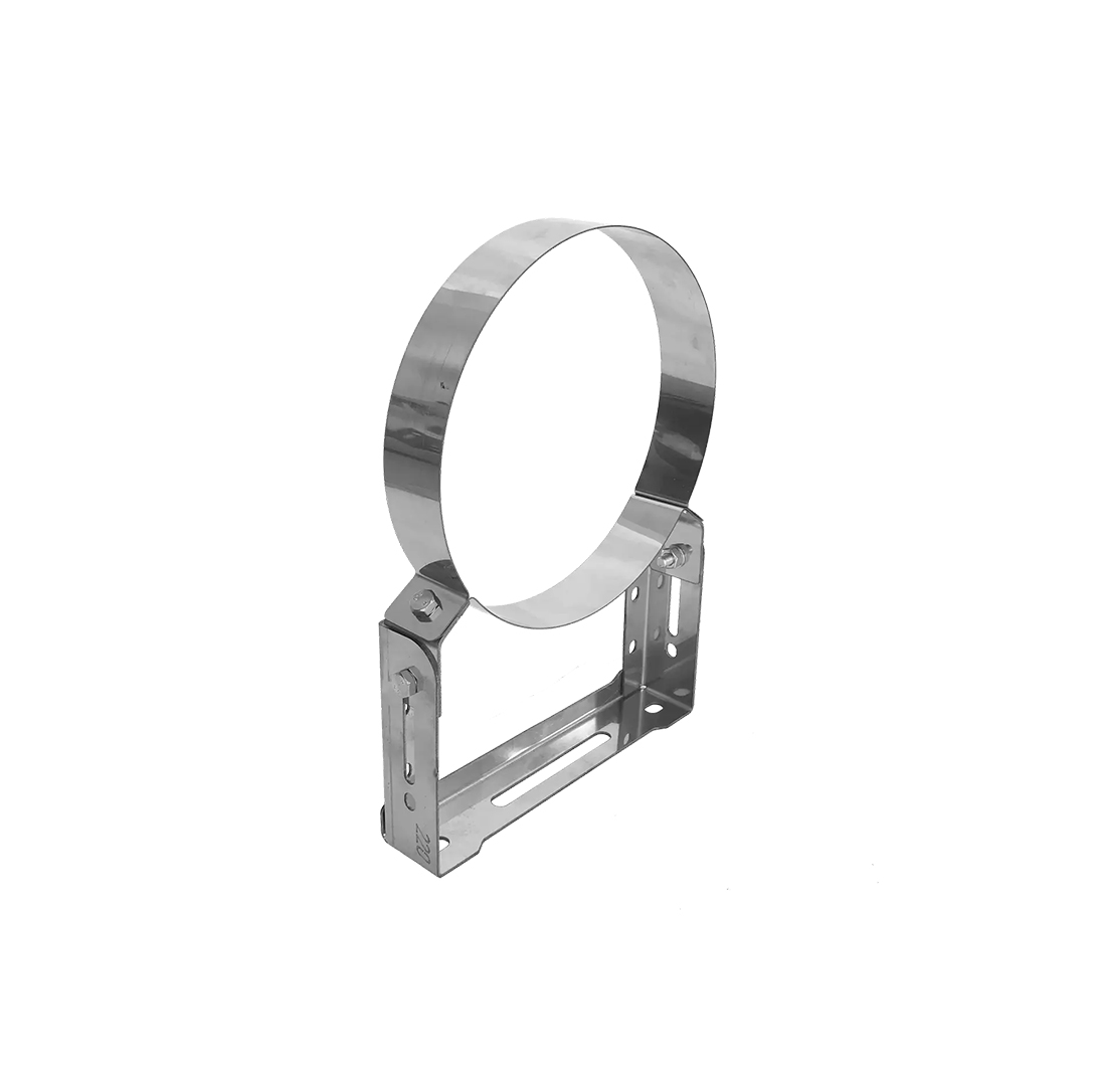 Clipsa de perete inox CF 0-100 D220 (304) VL - clipsă de perete din oțel inoxidabil este utilizată pentru a fixa partea verticală a unui coș de fum izolat pe perete. Designul special al picioarelor clemei de perete vă permite să reglați distanța dintre coș și perete de la 50 la 100 mm.