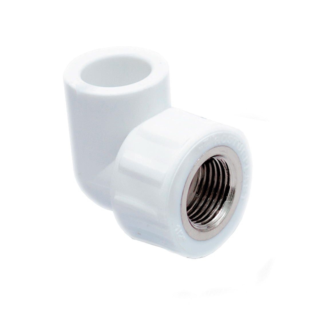 „RTP” cu filet femelă cot se folosește pentru a îmbina o țeavă PP-R și o componentă a sistemului, filetată feminin la un unghi de 90 ° una față de cealaltă. Pătratul combinat respectă standardul național GOST 32415-2013 și rezistă la presiuni de până la 25 de bari. Piesele încorporate sunt fabricate din alamă LS-59-2 de înaltă calitate, cu plumb redus.
