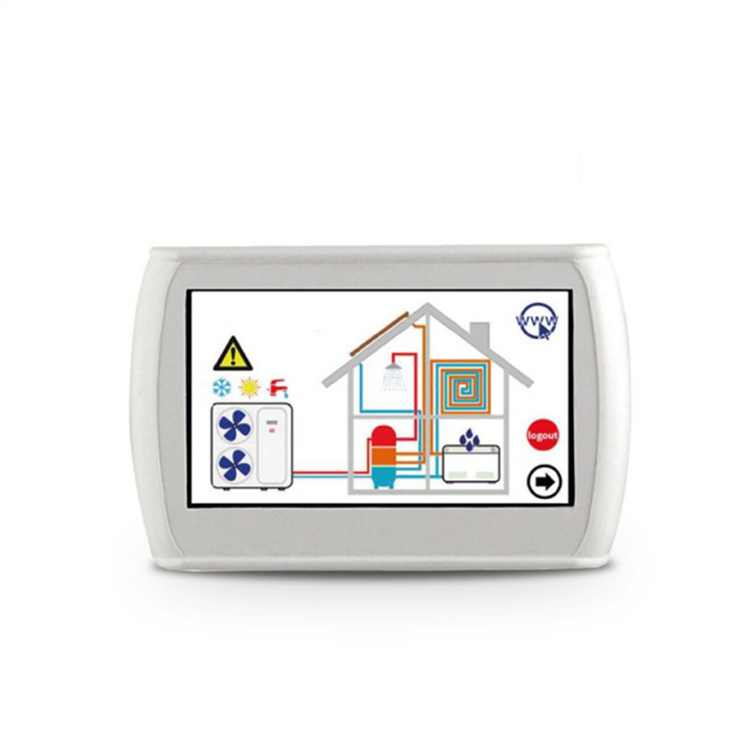 Panoul cu ecran tactil este utilizată pentru gestionarea centralizată a unei pompe de căldură. De asemenea, poate fi folosit pentru funcții parțiale (de exemplu ca panou la distanță pentru un singur răcitor/pompă de căldură sau ca termostat de cameră pentru gestionați niște ventiloconvector).