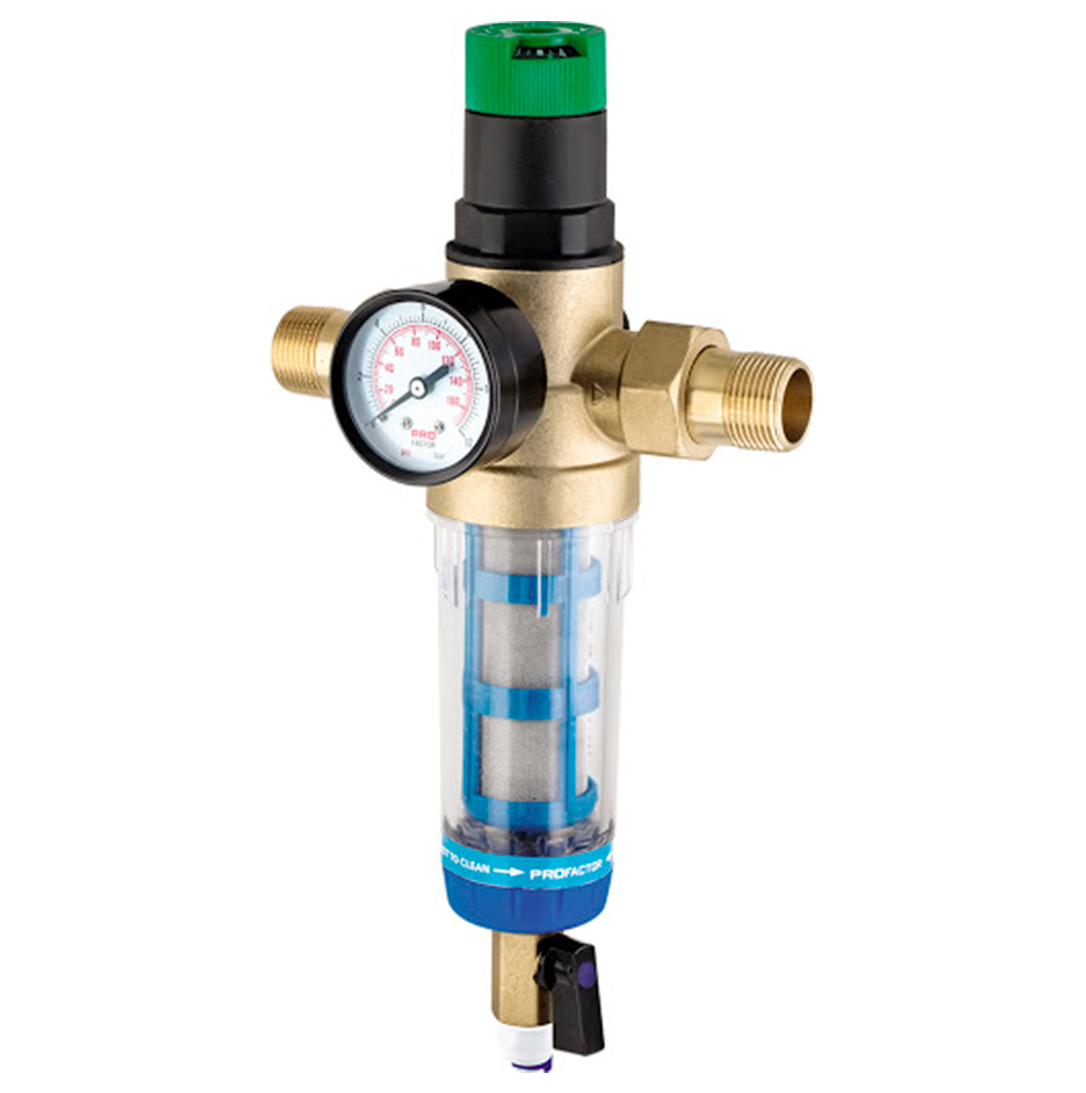 Фильтр промывной PROFACTOR «TWIST TO CLEAN» 1/2"-3/4" с регулятором давления и манометром